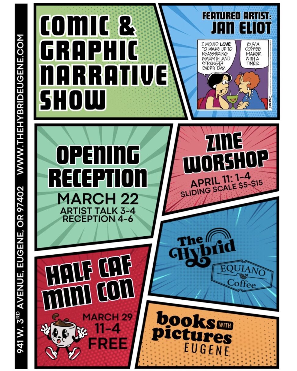 Free event: OCP at the Half Caf Mini Con in Eugene (March 29, Eugene at The Hybrid, 11-4) Join the OCP at Half Caf for zine making and connecting. In Oregon cartooning ← Previous post